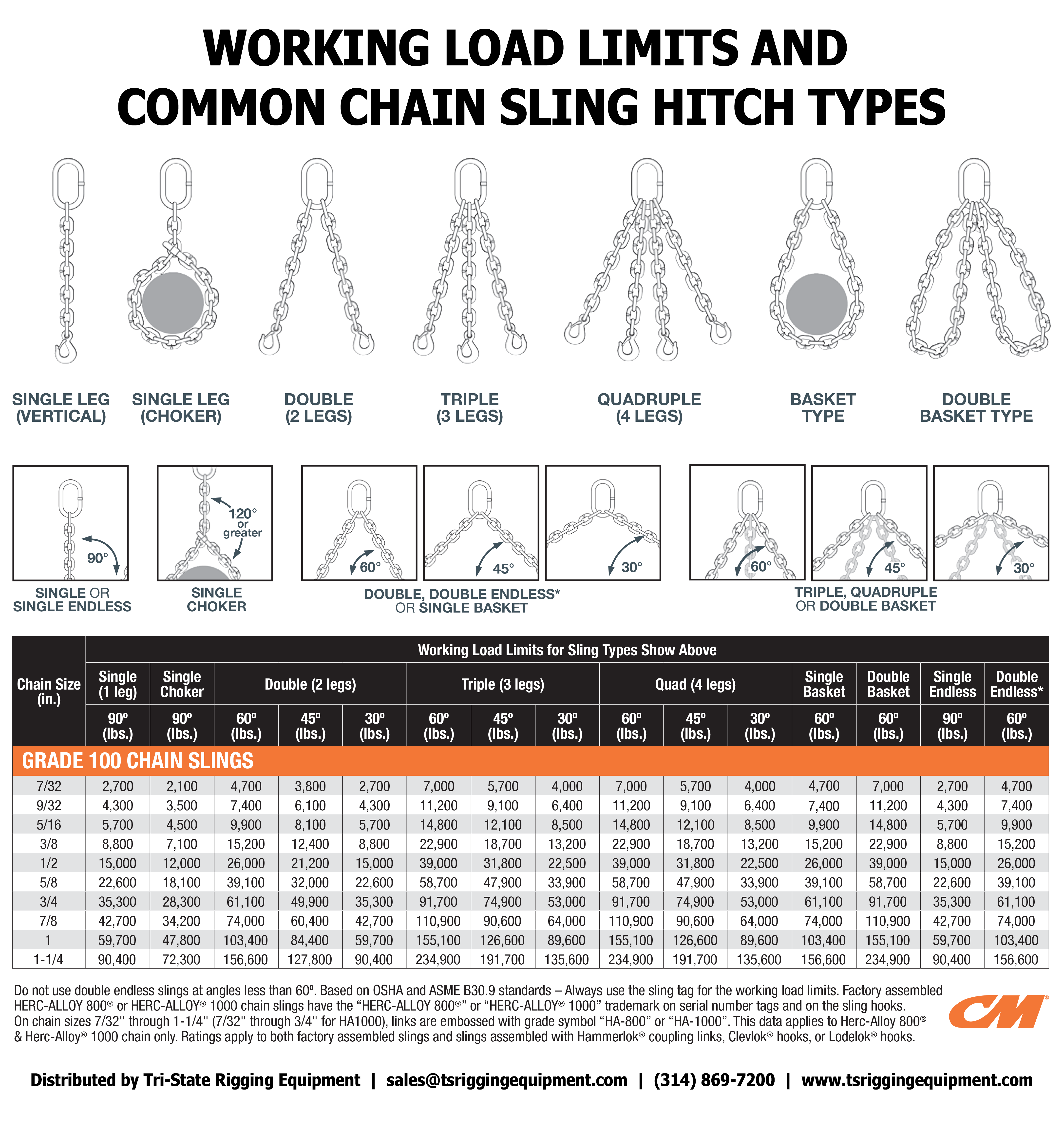 • Standards: OSHA 1910.184, ASME B30.9, Chain meets ASTM A973, Hooks and Hammerloks meet ASTM A952, NACM.