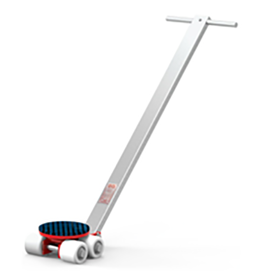 - Features a swivel top and pulling handle for safe front steering support of load-moving systems.