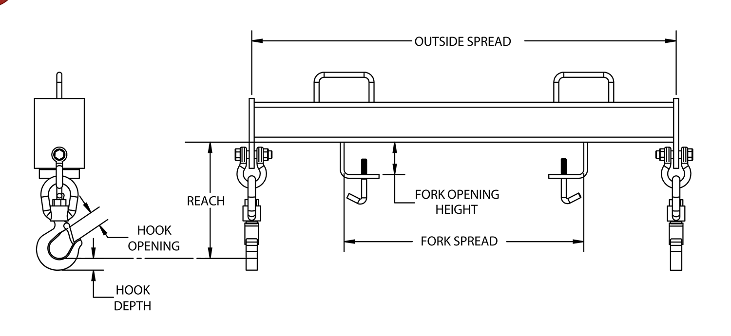 Harrington Fork Truck Double Hook Beam, 2 Ton Capacity, 20 in. Fork Spread, HFHBD-2-20